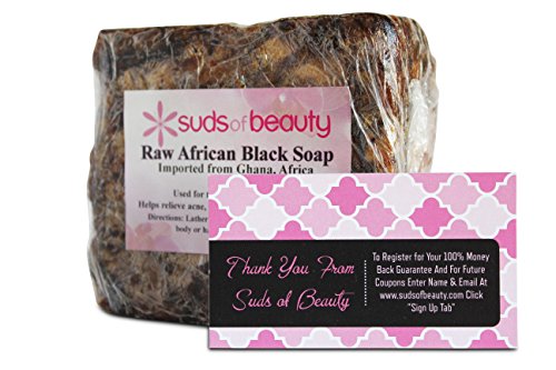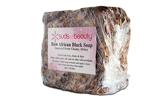 #1 Trusted African Black Soap With Shea Butter & Coconut Oil -LOVE IT OR YOUR MONEY BACK African Soap Fights Acne, Eczema, Psoriasis -Anti Wrinkle, Anti Aging & Repairs Dark Circles, Fades age spots -1 Pound(16 oz) Natural Ingredients -Suds of Beauty Rating: