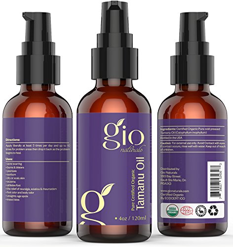 100% Pure Virgin Tamanu Oil 4 oz - Cold Pressed & Unrefined - Gio Naturals Premium Grade Tamanu Oil is USDA & ECO Certified Organic. Treats Acne Scars, Psoriasis, Eczema, Toenail Fungus, Burns & More! 4.6 out of 5 based on 272 ratings. 272 user reviews