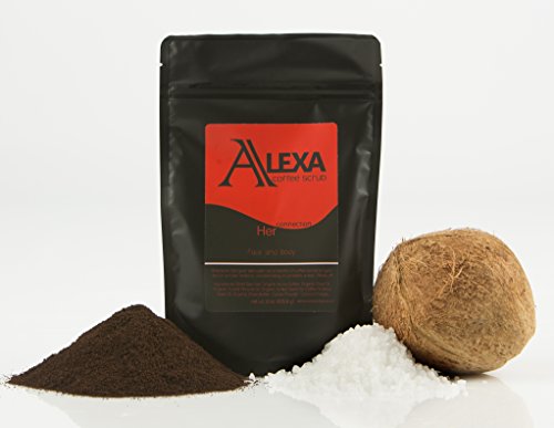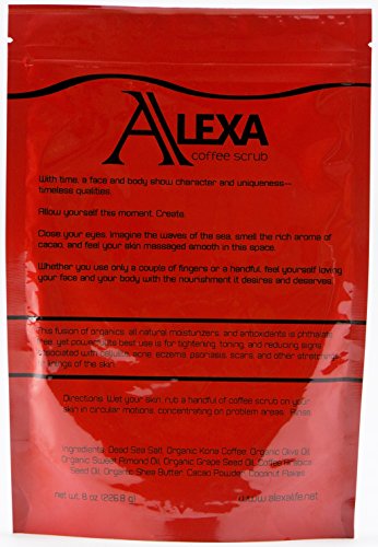 ALEXA: Organic KONA Coffee Scrub with Dead Sea Salt and Organic Olive Oil, Sweet Almond Oil, Grape Seed Oil, Shea Butter, & More (8oz)