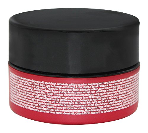 An ultra-hold styling mud that provides texture and separation with a firm, matte finish. Free Of: Parabens, Sulfates, Phthalates, Synthetic Color, Sodium Chloride, Gluten, Phthalates, Mineral Oil & Petrolatum.