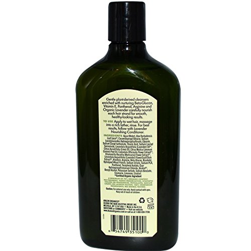 - Avalon Organics Lavender shampoo includes chamomile shampoo ingredients, raw shea butter, and jojoba oil to heal and nourish hair.