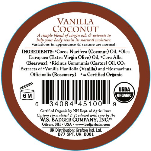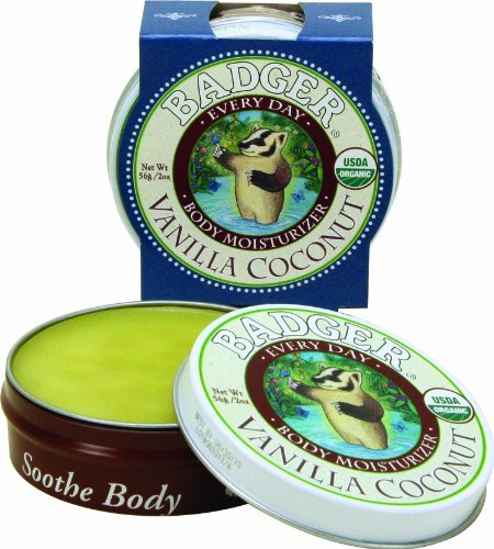 Moisturizer - Body Butter Badger Vanilla Coconut Every Day Moisturizer Each Day Luxury for Your Skin. Organic Virgin Coconut Oil is pure white, deliciously fragrant and very refreshing. It is simply absorbed into the skin, and creates a healthier glow. Our Coconut Oil is organically created and cold-pressed within one hour of harvesting, locking in antioxidants and delicate aroma volatiles. Valuable and exotic Madagascar Vanilla essential oil generates a dreamy fragrance, like macaroons cooking in the oven - a single of Badger Bill\'s favored scents! $11.04 http://ecx.images-amazon.com/images/I/61pjzf9fUqL._SL160_.jpg