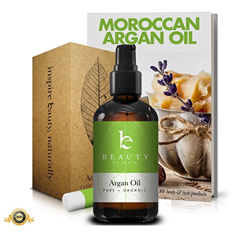 Beauty by Earth Argan Oil ★ 4oz Bottle ★ Free Beeswax Lip Balm and Downloadable E-Book With Recipes for Treatment of Hair, Face, Skin and Nails ★ Best Virgin, Pure Certified Organic, Imported from Morocco ★ Moroccan Oil is Cold Pressed and Has Amazing Anti-Aging and Moisturizing Benefits ★ Now Comes With a Treatment Pump