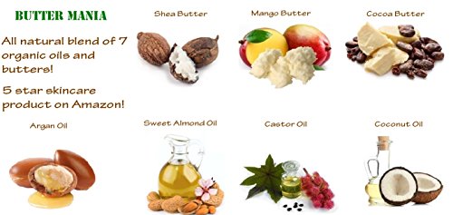 - NATURAL AND ORGANIC - Butter Mania has 7 of the best natural ingredients such as sweet almond oil, coconut oil, argan oil, creamy shea butter, mango butter and cocoa butter.