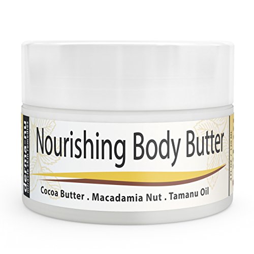 Body Butter Organic - Moisturizer for Dry Skin - Best Massage Cream, Treatment for Sun Damaged Skin & Winter Skin. Skin Hydrating Booster - Cocoa Butter, Macadamia Nut Oil, Tamanu Oil & Aloe - 4oz Rating: