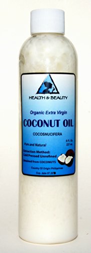Coconut Oil Extra Virgin Organic Pure Cold Pressed Unrefined Raw 8 oz