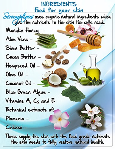 Coconut Oil Moisturizer Skin Cream with Manuka Honey and Aloe Vera By Scrumptious - Natural Organic Formula - Fragrance Free Cream - Good for Shingles, Dermatitis, Eczema, Psoriasis. Smooths Skin and Provides Moisture Balance for Your Skin 4oz