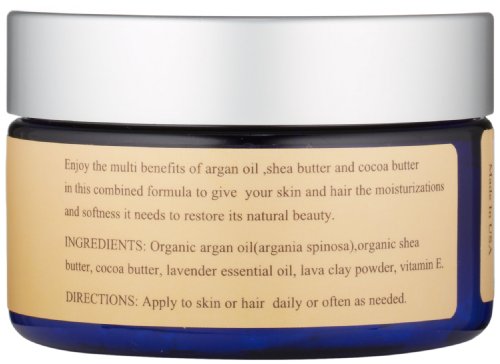 Moisturizer - Body Butter Elma and Sana Argan Oil Whipped Moisturizer for Skin, Hair, Nail and Feet, Body Butter, 2.5 Ounce argan oil Shea Butter can supply relief from every thing from just dry skin to numerous skin conditions offers moisture to dry or damaged hair from the roots to the very ideas, repairing and defending towards climate injury, dryness and brittleness. It also absorbs quickly and completely into the scalp to rehydrate with no clogging pores. It is specifically beneficial for processed and heattreated hair. It is an outstanding treatment method for dry scalp. It restores luster to hair. $7.95 http://ecx.images-amazon.com/images/I/41wQiGN6OXL._SL160_.jpg
