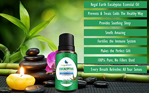 - REGAL EARTH EUCALYPTUS OIL PROVIDES A NATURAL MOOD ENHANCING, REFRESHING AND ENERGIZING FEELING WITH EVERY BREATH YOU TAKE. It's the best healing alternative to common medicins and in most cases it works faster, while having the double effect of preventing the common colds in the first place.