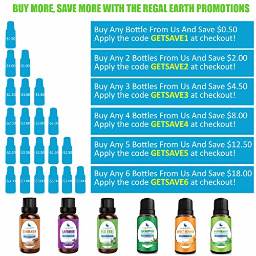 - All Regal Earth oils come with a No Love-No Hassle Money Back Guarantee! Applies to all our Essential Oils: Lavender, Peppermint, Sweet Orange, Eucalyptus, Tea Tree, Cinnamon. But YOU'RE GUARANTEED TO FALL IN LOVE with our quality, packaging and delicious aromas