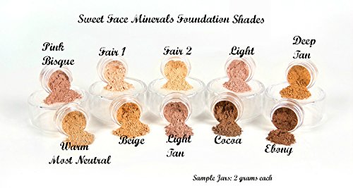 Foundation FOUNDATION SAMPLER KIT Mineral Makeup Sample Size Matte Bare Skin Cover Powder (5 Shades of Foundation) *Please be positive to allow us know your Foundation Shades by both leaving us a note in the comment part when you checkout or email us your assortment. You cannot go incorrect with this sampler pack because you get to decide on your personal shades! Mineral Foundation: Sweet Encounter Minerals foundations are all organic and extremely lightweight. Our goods in no way seem heavy or seem caked and are superb for every skin sort. Will not lead to irritated itching skin or acne. These are 5 gram jars filled to capability with two grams of powder. Consists of an instruction card for applying your makeup like a pro. $16.99 http://ecx.images-amazon.com/images/I/41fotqy0F4L._SL160_.jpg