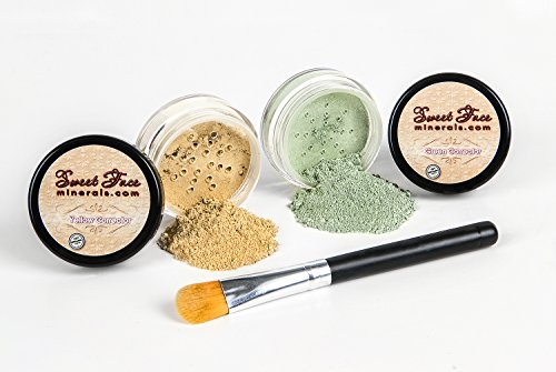 GREEN & YELLOW CORRECTOR Kit with Concealer BRUSH Mineral Makeup Set Bare Skin Face Foundation Powder