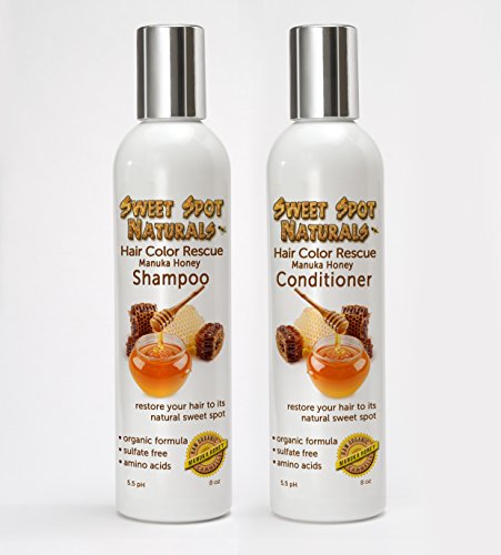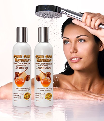 Hair Color Rescue, Best Shampoo and Conditioner Set for Chemically Damaged Hair. Concentrated Treatment for Dry, Frizzy, Brittle Hair. Natural Organic Moisturizing. Raw Manuka Honey, Organic Aloe Vera, Coconut Oil Extract. Sulfate Free, Paraben Free, Alcohol Free and Fragrance Free. Color Safe.