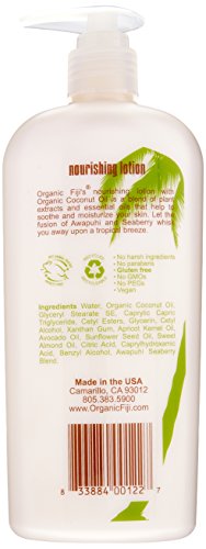 - Organic Fiji' s nourishing lotion with certified organic virgin coconut oil is a blend of plant extracts and essential oils that help to soothe and moisturize your skin