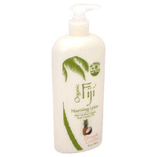 With Certified Natural Virgin Coconut Oil. We practice fair trade. From the earth to your skin. Organic Fiji\'s nourishing lotion with certified organic Virgin Coconut Oil is a mix of plant extracts and crucial oils that support to soothe and moisturize your skin. Let the all-natural, tropical aroma of Pineapple and Coconut arouse your island spirit. Cold pressed. No harsh elements. No parabens. No GMOs. No PEGs. Not animal tested. Cruelty cost-free. Created in the Fuji Islands.