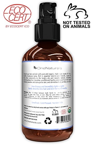 - OneNaturals USDA-certified Organic Jojoba Oil is a light-weight, multipurpose oil that deeply hydrates hair, skin, and nails. It is 100% pure (unrefined), chemical and preservatives-free, and cold-pressed. Non-greasy and unscented. Apply directly or mix with your favorite lotion, shampoo, or other essential oils for enhanced moisturization.