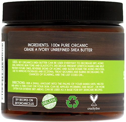 Organic Shea Butter By Sky Organics: Unrefined, Pure, Ivory Shea Butter 16oz - Skin Nourishing, Moisturizing & Healing, For Dry Skin, Anti-Inflammatory -For Skin Care, Hair Care & DIY Recipes