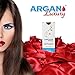 - BUY WITH CONFIDENCE AND MONEY-BACK GUARANTEE: This is 100% Pure Argan Oil. It has no additives, chemicals, parabens or anything else - just the best pure Argan oil available. We bottle our oil in dark glass bottles to preserve freshness. 100% money-back guarantee. Your search for the highest quality Moroccan beauty secret is over. Order now and receive a FREE LUXURIOUS RED SATIN BAG with every bottle of oil you get from us. GET FREE SHIPPING AND SAVE MORE WHEN YOU BUY 2 OR MORE. SEE COUPON CODE BELOW.