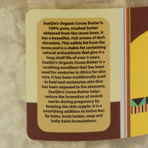 Moisturizer - Body Butter RAW ORGANIC CACAO BUTTER 1 Lb (Cold pressed, Never been melted, for baking Chocolate) SaaQin ® provides the highest High quality organically grown, raw, vegan, gluten free of charge, non-GMO products obtainable and exclusively utilizes reduced temperature drying methods to protect all the crucial enzymes and nutrients. Our Natural Raw Cocoa Butter is in essence the pure oil of the Cocoa bean. It has an extraordinary aroma and texture and very ideal for chocolate creating. Our Cocoa Butter is developed through a proprietary cold-pressed approach by cold-pressing natural Cocoa nibs in such a way that the oil separates from the protein and fiber. Since our raw organic Cocoa Butter is not damaged by large heat, it retains all its natural healing properties. Cocoa Butter contains tocopherols and polyphenols that can suppress cost-free radicals and soothe skin irritations. It can even be utilized right to the skin as a skin moisturizer or massage oil. Cocoa Butter also contains the fatty acid Stearic Acid which could decrease levels of cholesterol in the blood. Cocoa butter melts at approximately 90 degrees Fahrenheit (35 degrees Celsius.). Storage: Shop in a awesome, dry location. Shelf-lifestyle: 5 years. Net wt.: 16 oz. Packaged in a dairy-free of charge, peanut-totally free, gluten-cost-free, vegan facility. $18.00 http://ecx.images-amazon.com/images/I/51KrSa3BlCL._SL160_.jpg