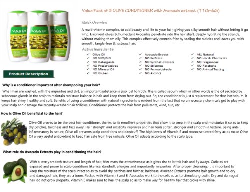 Silky Smooth Conditioner - Olive Oil Conditioner with Avocado Extract - Herbal Conditioner - Sulfate Free - Scalp Therapy - Moisture Therapy - ALL Natural - Each 3.7 Ounces - Value Pack of 3 X 110ml (11.16 Ounces) - Vaadi Herbals 4.1 out of 5 based on 7 ratings. 7 user reviews