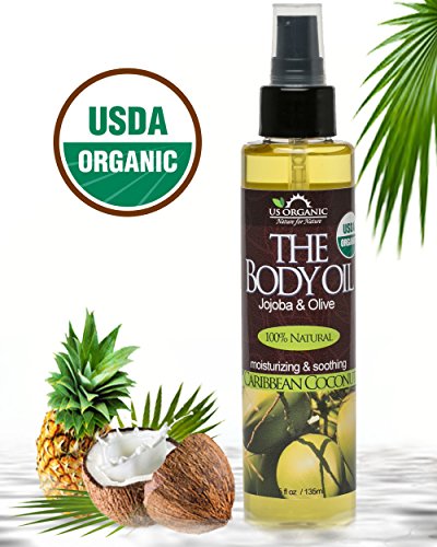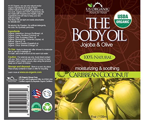USDA Certified Organic Body & Bath Oil - Caribbean Coconut, 5 Fl.oz. ★ Brand New ★ The Highest Quality Pure, Certified Organic and 100% Natural Daily Body Oil ★ Luxurious. Light and Easily absorbable after shower to Moisturize Skin or Use as a Massage Oil. ★ Jojoba & Olive Oil along with Vitamin E. Anti-inflammatory ★ No Alcohol, No Paraben, No Artificial Detergents, No Color, No Synthetic perfumes, No Chemicals.