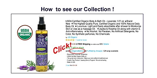 USDA Certified Organic Body & Bath Oil - Lavender, 5 Fl.oz. ★ Brand New ★ The Highest Quality Pure, Certified Organic and 100% Natural Daily Body Oil ★ Luxurious. Light and Easily absorbable after shower to Moisturize Skin or Use as a Massage Oil. ★ Jojoba & Rosehip Oil along with Vitamin E. Anti-inflammatory ★ No Alcohol, No Paraben, No Artificial Detergents, No Color, No Synthetic perfumes, No Chemicals.