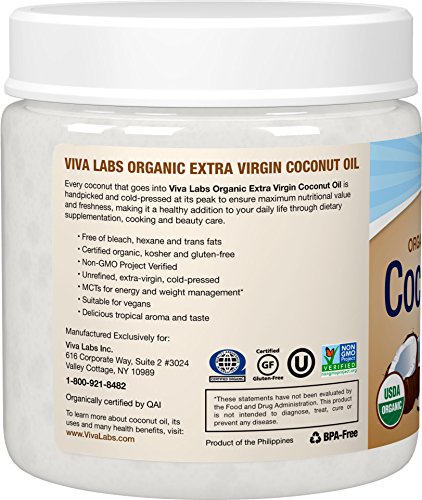 Viva Labs The Finest Organic Extra Virgin Coconut Oil, 16 Ounce