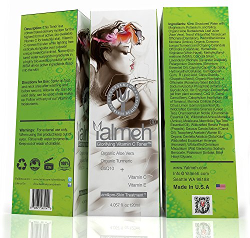 YALMEH Glorifying Vitamin C Toner- Natural and Organic Skin Toner with Organic Aloe Vera, Organic Turmeric, MSM and CoQ10 - Considered the Best Anti Aging Face Toner Available - Restore Your Skin's Natural Balance - Nourish and Hydrate the Skin Deeply for that Healthy, Radiant Glow!